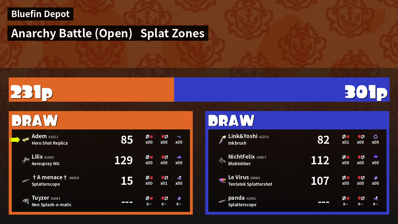 | Mode | Splat Zones - Anarchy Battle (Open) | ||