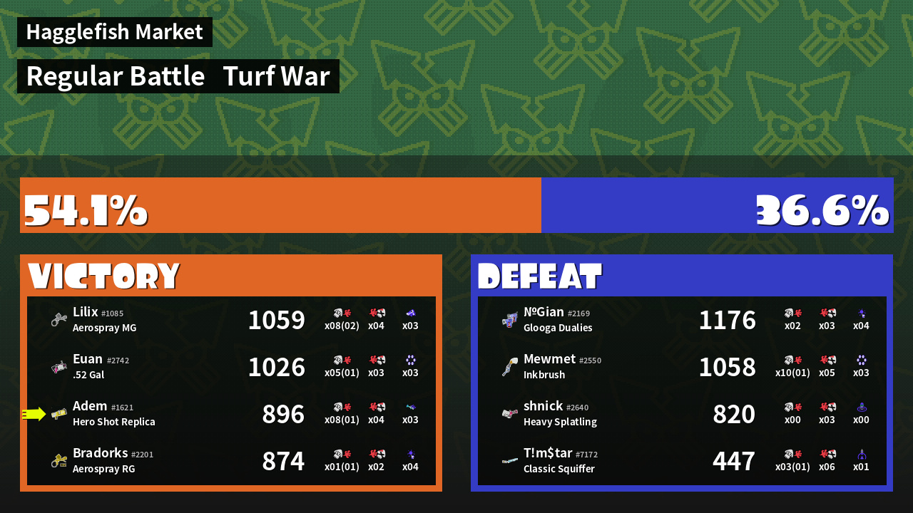 | Medals | #1 Overall Splatter #1 Popular Target #1 Enemy Splatter | ||