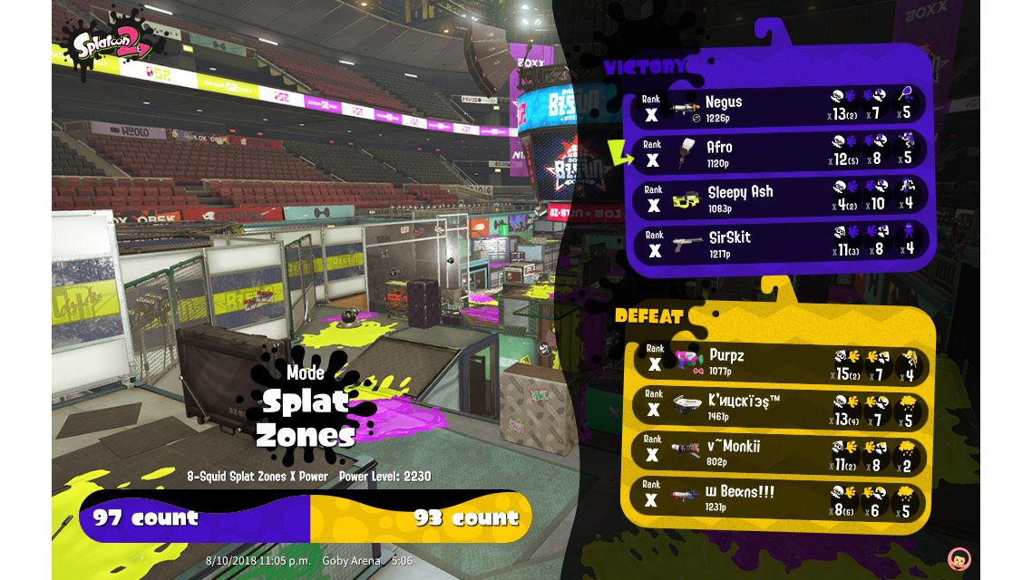 | Mode | Splat Zones - Ranked Battle | ||||||||||||||||||||||||||||