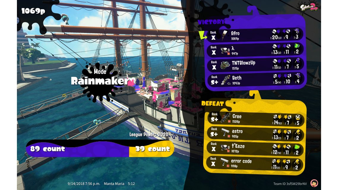 | Mode | Rainmaker - League Battle (Twin) | |||||||||||||||||||||||||||||||