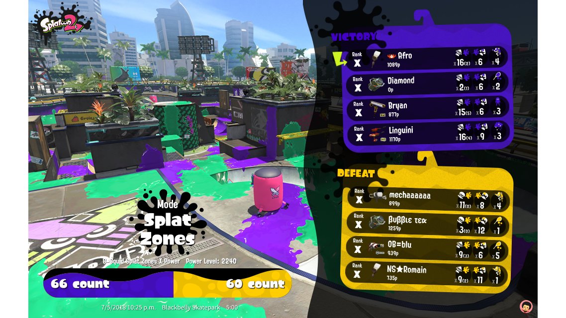 | Mode | Splat Zones - Ranked Battle | ||||||||||||||||||||||||||||