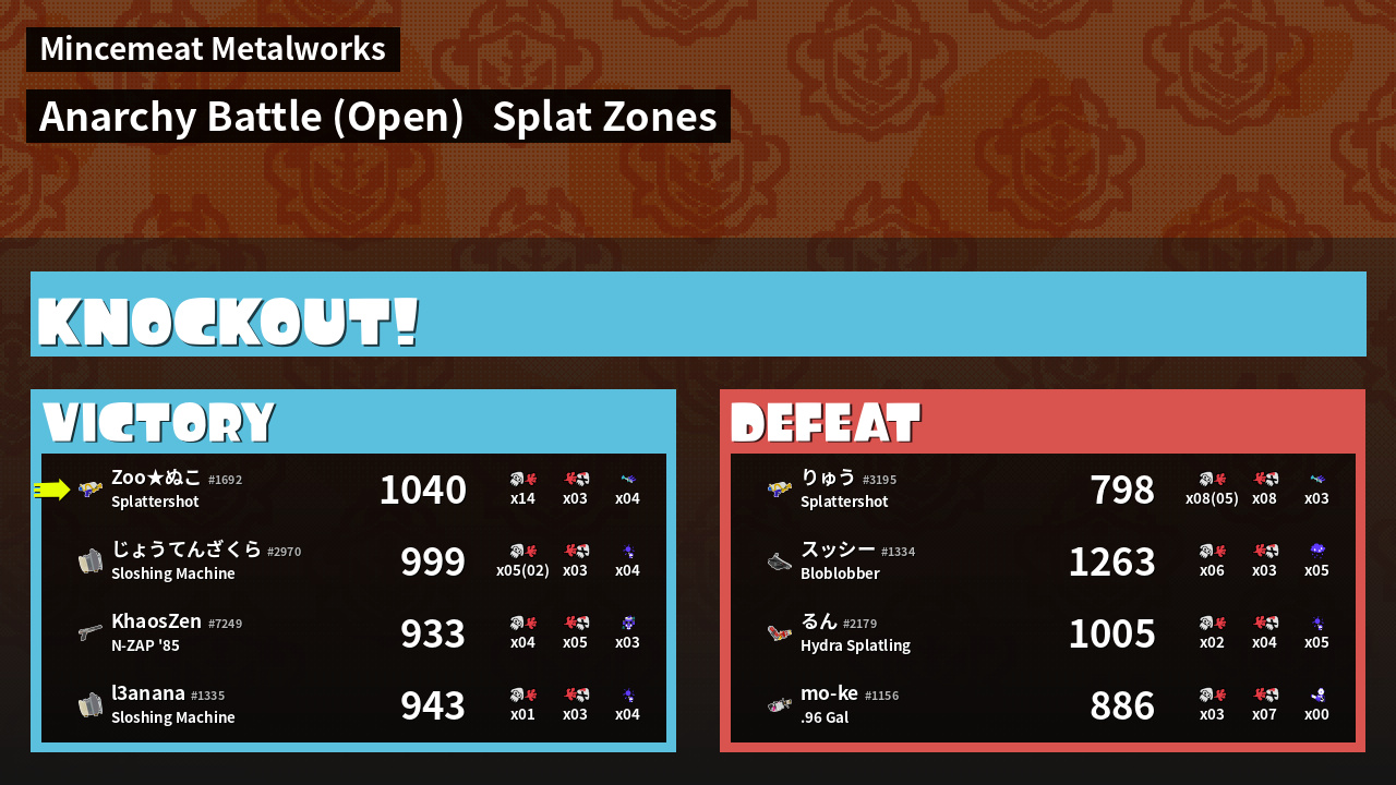| Mode | Splat Zones - Anarchy Battle (Open) | ||