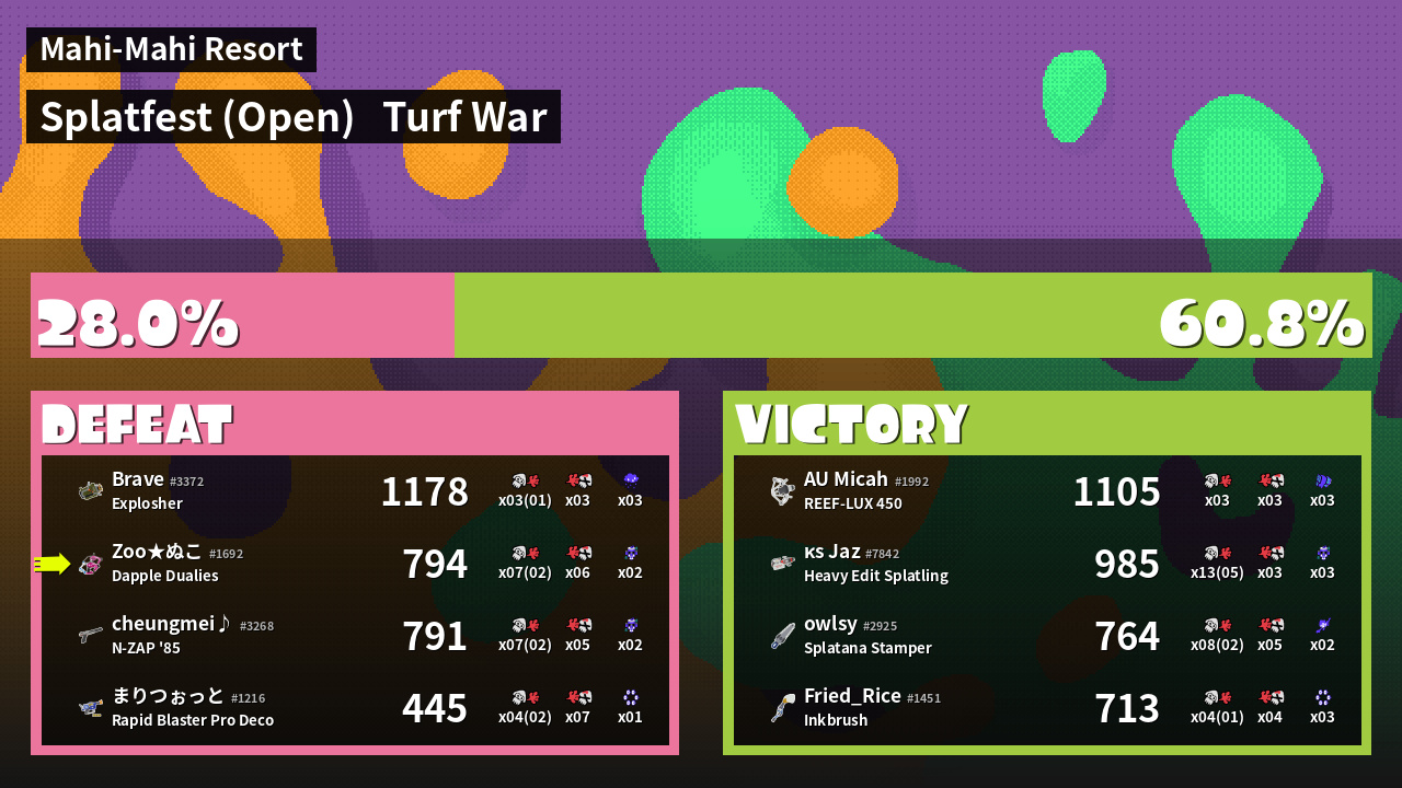| Mode | Turf War - Splatfest (Open) | ||