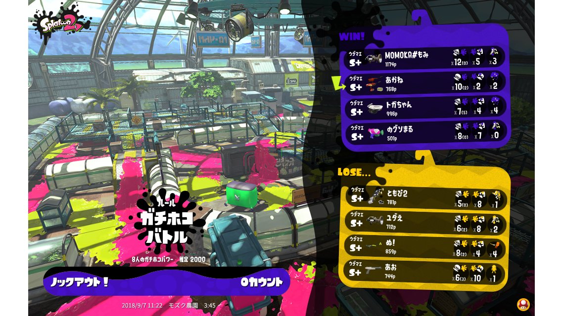| Name | Weapon | Level | Rank | Inked | k+a/sp | k/d |