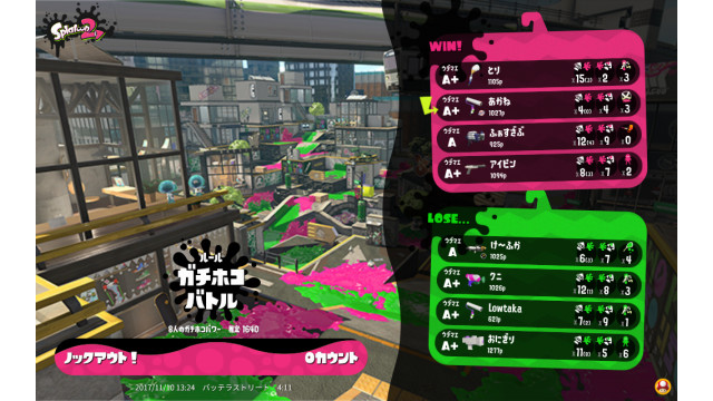 | Name | Weapon | Level | Rank | Inked | k+a/sp | k/d |