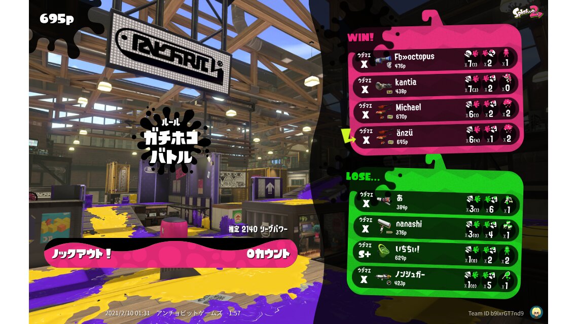 | Mode | Rainmaker - League Battle (Twin) | |||||||||||||||||||||||||||||||