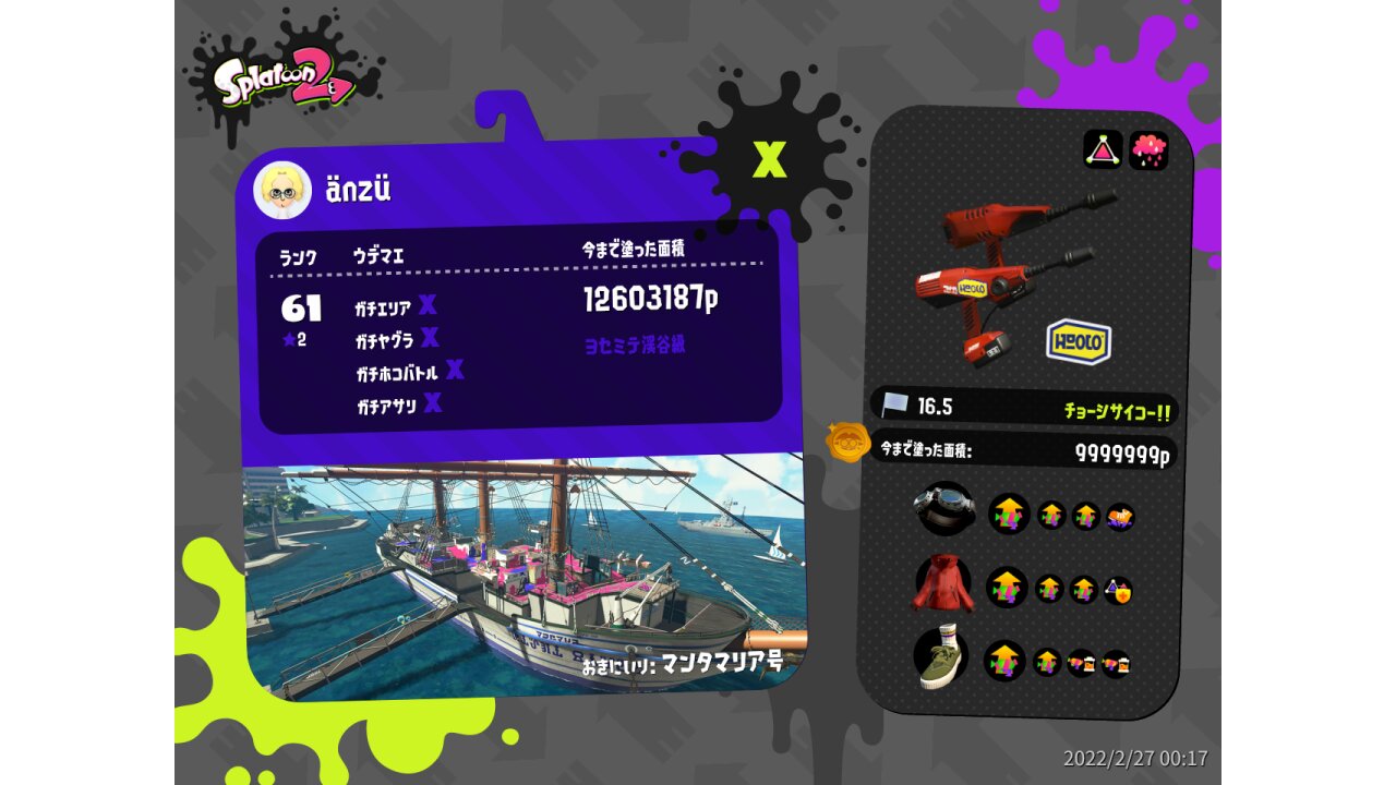 | SplatNet Battle # | 16,044 | |||||||||||||||||||||||||||||||