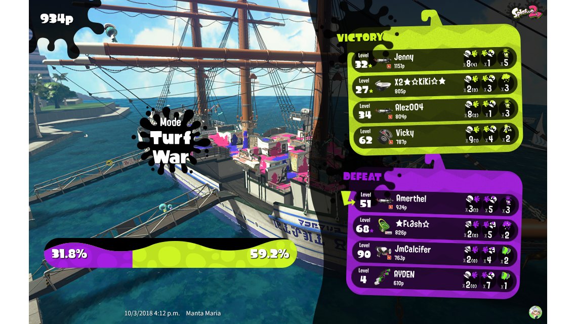 | Mode | Turf War - Regular Battle | |||||||||||||||||||||||||||||||||||||