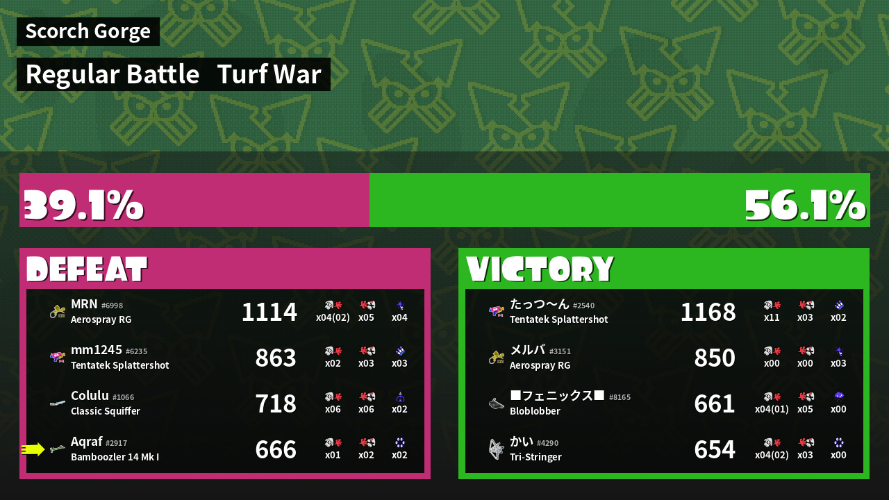 | Mode | Turf War - Regular Battle | ||