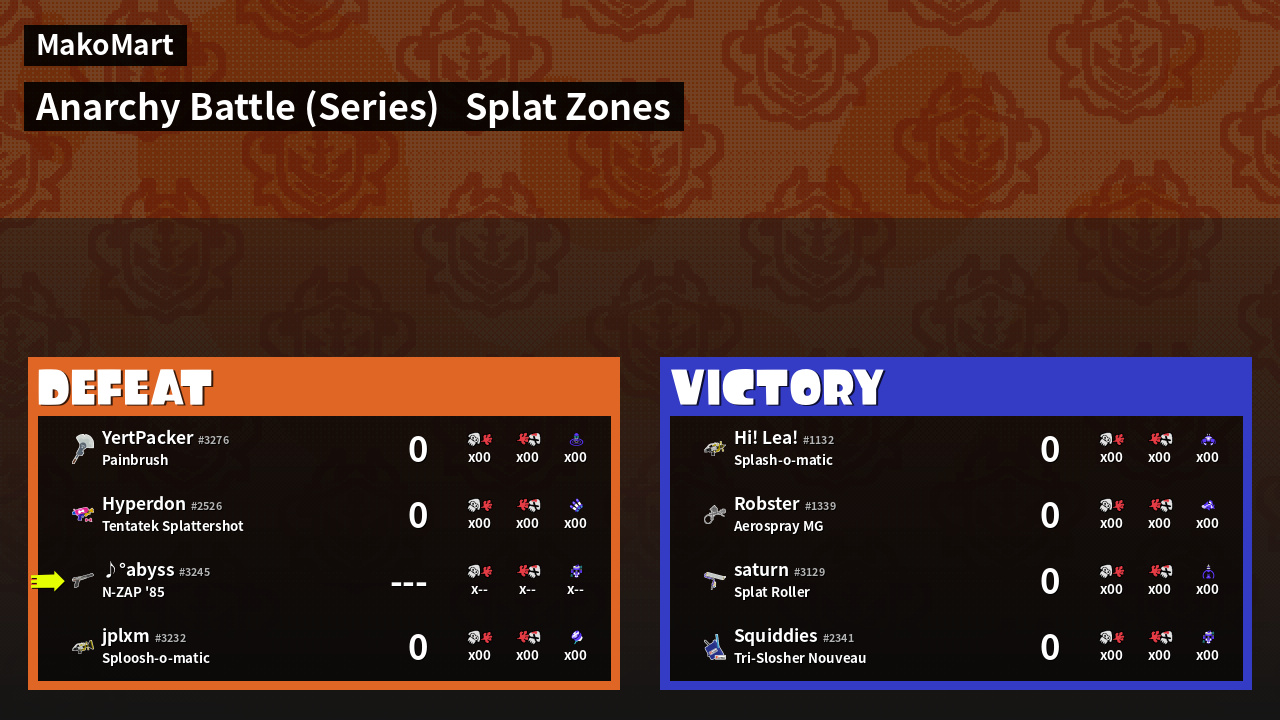 | Mode | Splat Zones - Anarchy Battle (Series) | ||