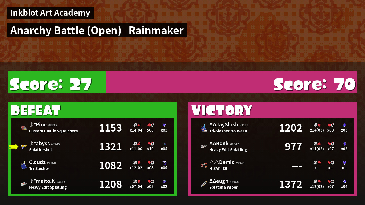 | Mode | Rainmaker - Anarchy Battle (Open) | ||