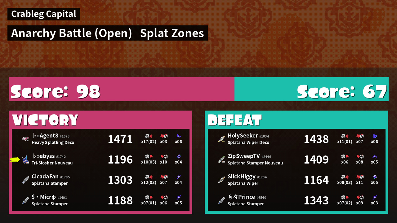 | Mode | Splat Zones - Anarchy Battle (Open) | ||