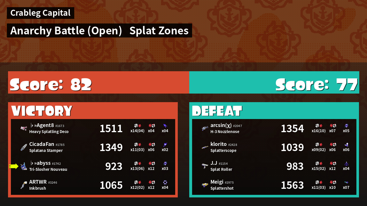 | Mode | Splat Zones - Anarchy Battle (Open) | ||