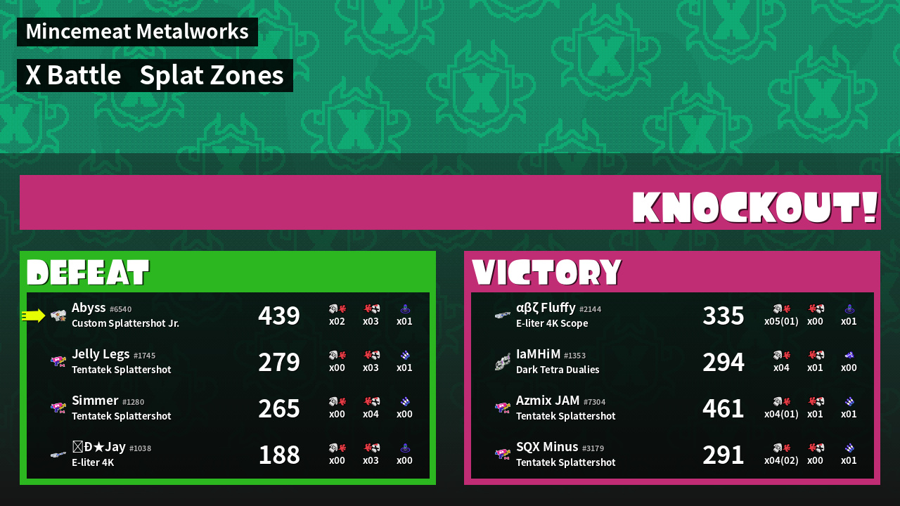 | Mode | Splat Zones - X Battle | ||