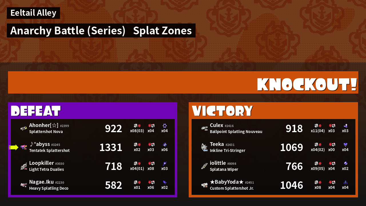 | Mode | Splat Zones - Anarchy Battle (Series) | ||
