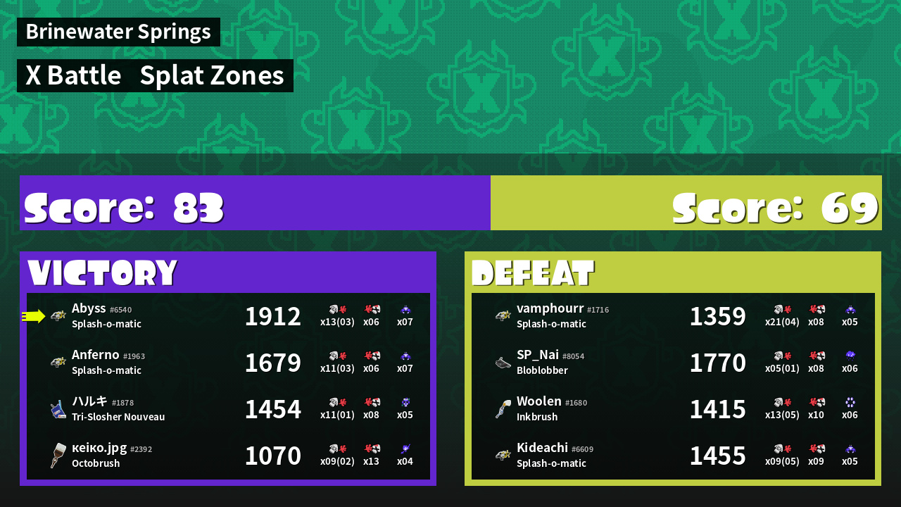 | Medals | #1 Overall Splatter #1 Splat Zone Inker #1 Splat Zone Guard | ||