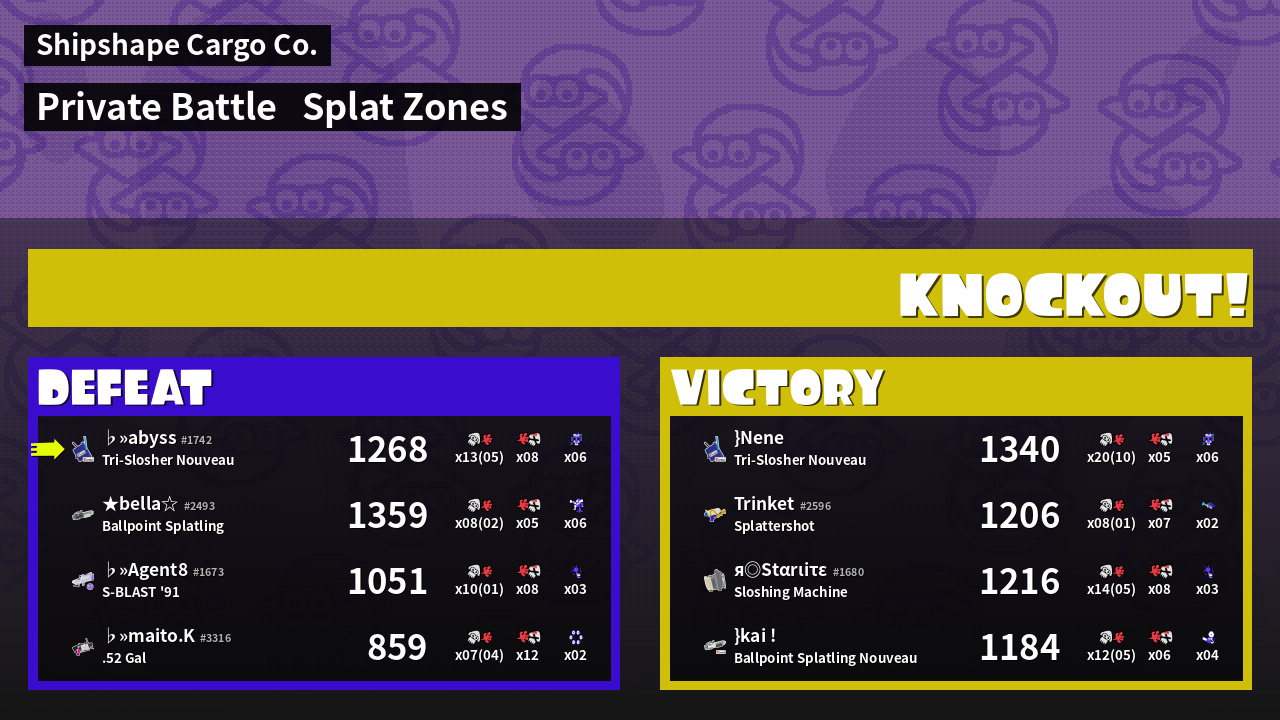 Kills / Deaths | 8 + 5 / 8 = Kill Ratio: 1.00 | ||