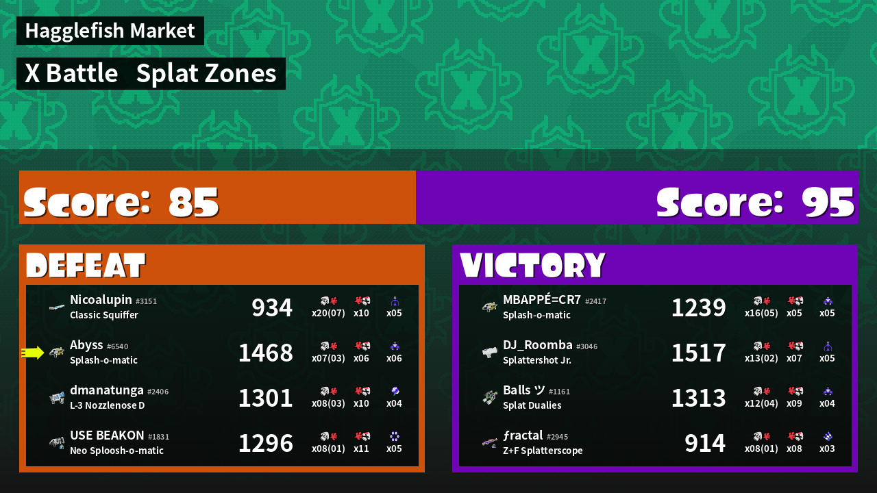 | Mode | Splat Zones - X Battle | ||