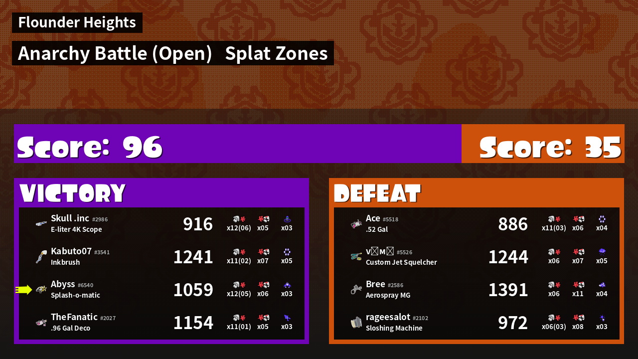 | Mode | Splat Zones - Anarchy Battle (Open) | ||