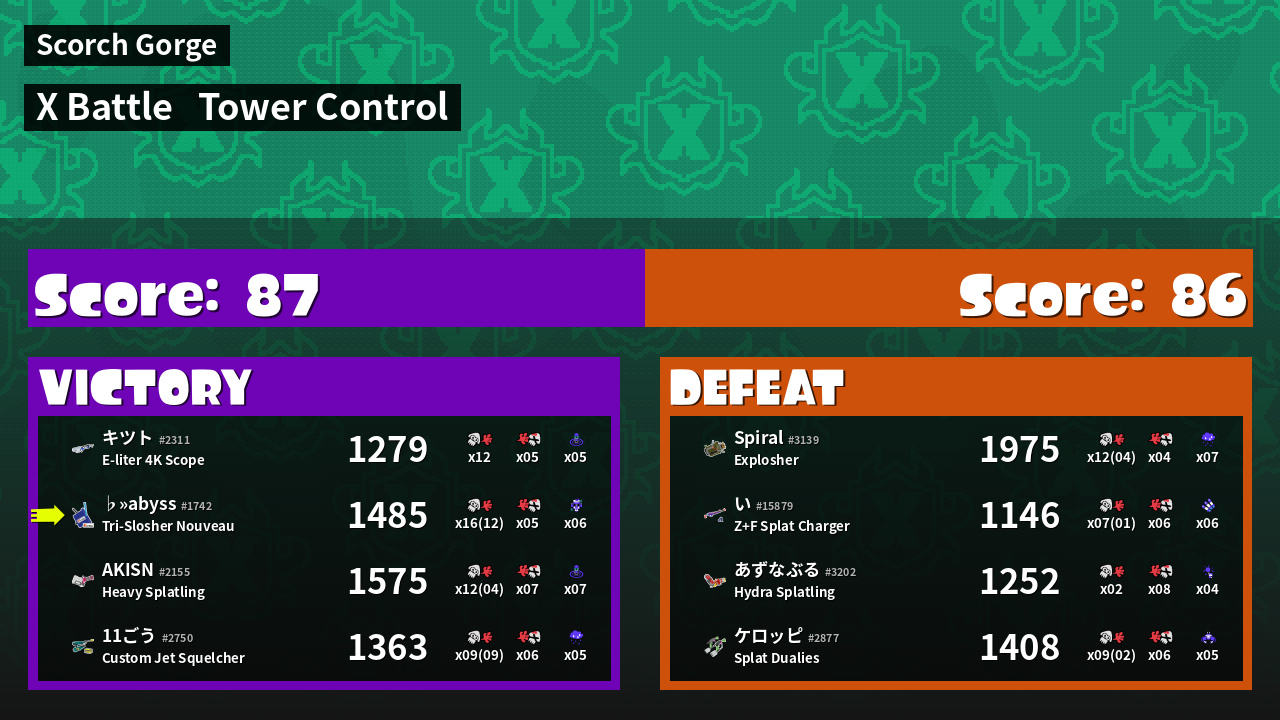 | Medals | #1 Overall Splatter #1 Splat Assister #1 Tower Stopper | ||