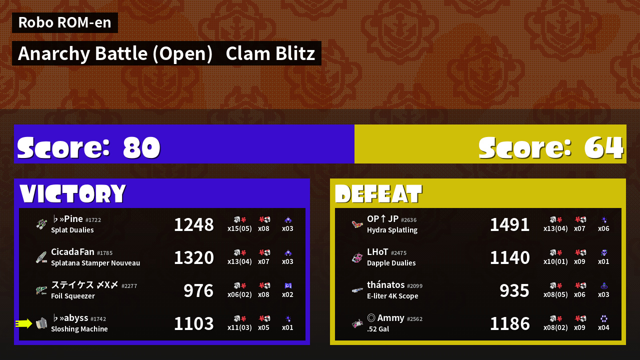 | Mode | Clam Blitz - Anarchy Battle (Open) | ||