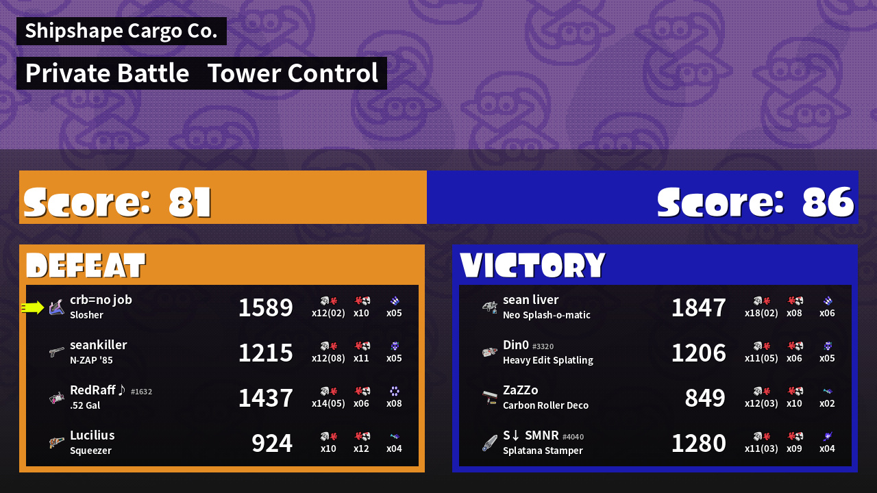 | Medals | #1 Turf Inker #1 Super Jump Spot #1 Enemy Splatter | ||