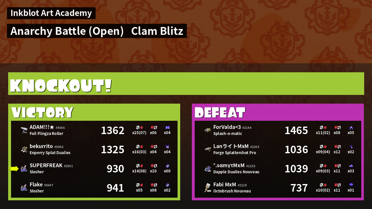 | Mode | Clam Blitz - Anarchy Battle (Open) | ||