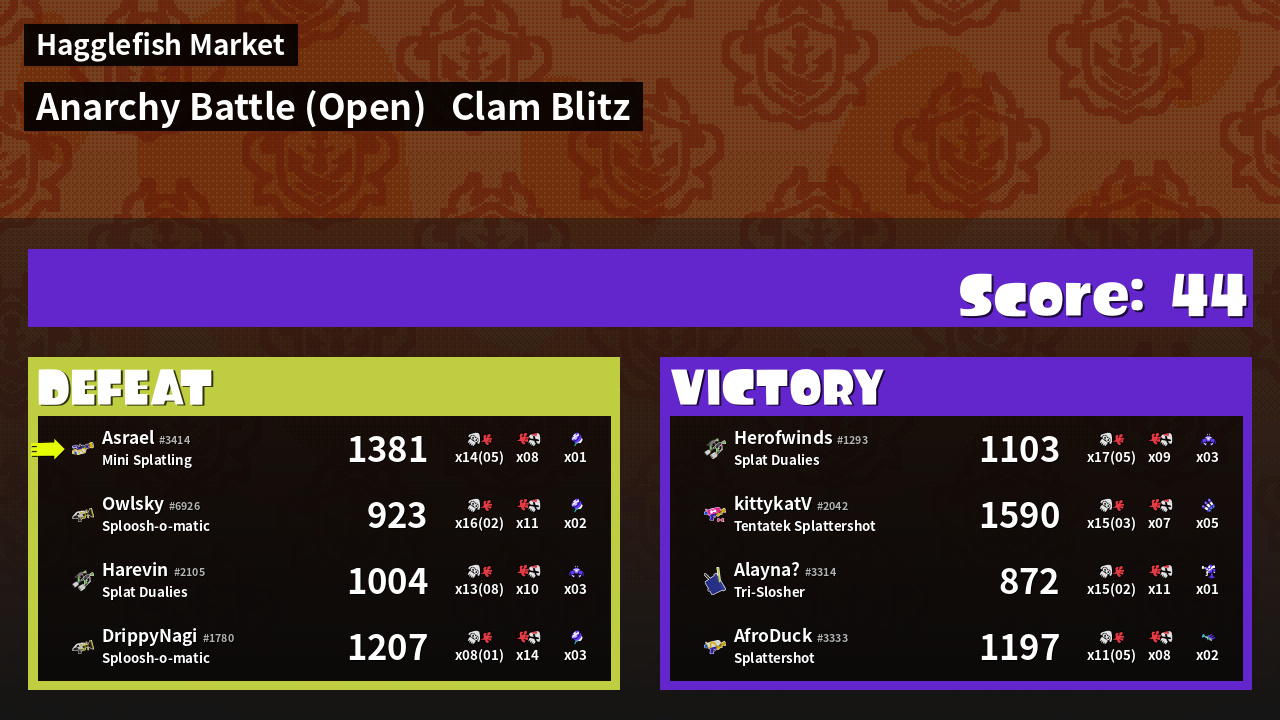 | Mode | Clam Blitz - Anarchy Battle (Open) | ||