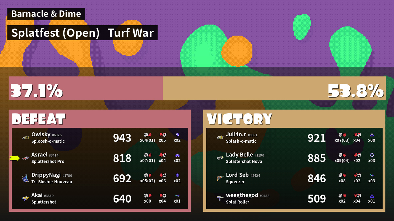 | Medals | #1 Overall Splatter #1 Popular Target #1 Super Jump Spot | ||