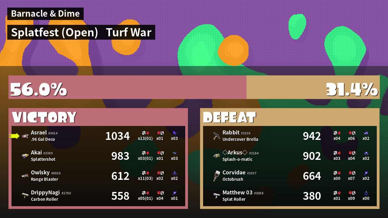 | Medals | #1 Overall Splatter #1 Turf Inker #1 Popular Target | ||