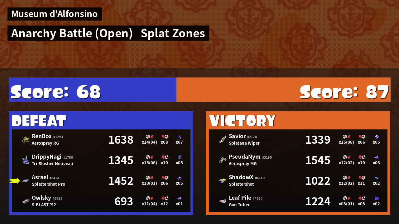 | Mode | Splat Zones - Anarchy Battle (Open) | ||