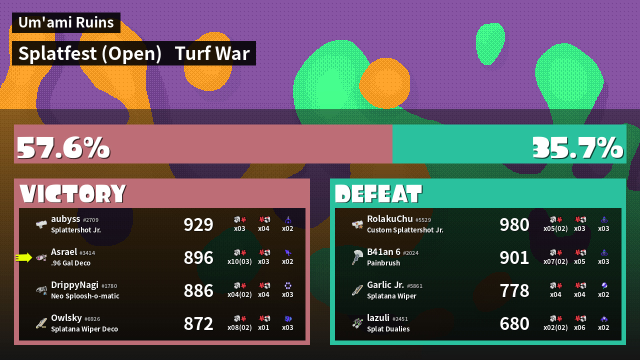 | Medals | #1 Overall Splatter #1 Popular Target #1 Enemy Splatter | ||