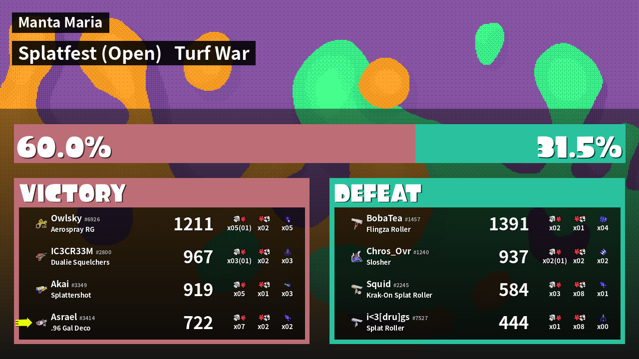 | Medals | #1 Overall Splatter #1 Popular Target #1 Super Jump Spot | ||