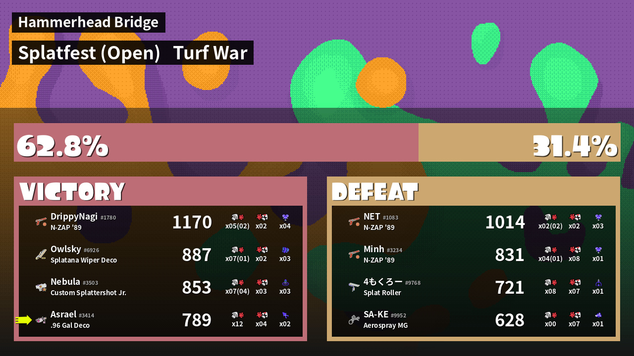 | Medals | #1 Overall Splatter #1 Popular Target #1 Enemy Splatter | ||
