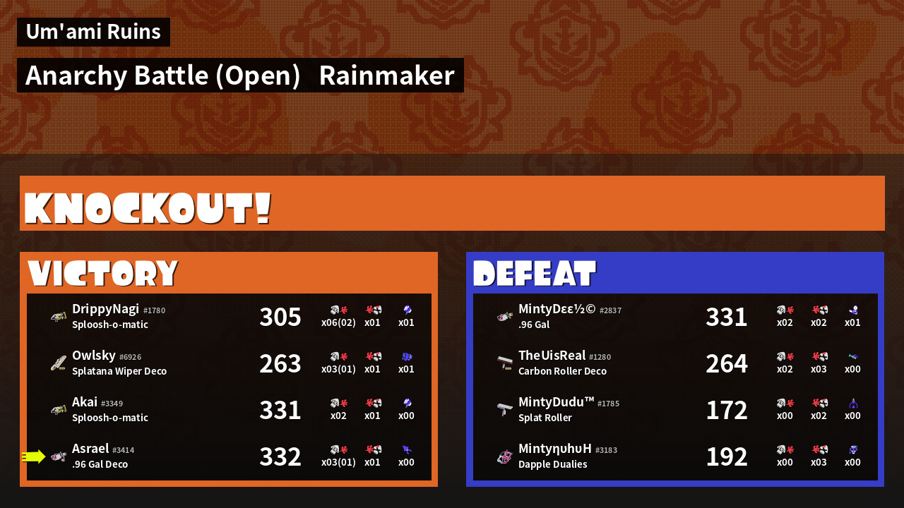 | Mode | Rainmaker - Anarchy Battle (Open) | ||