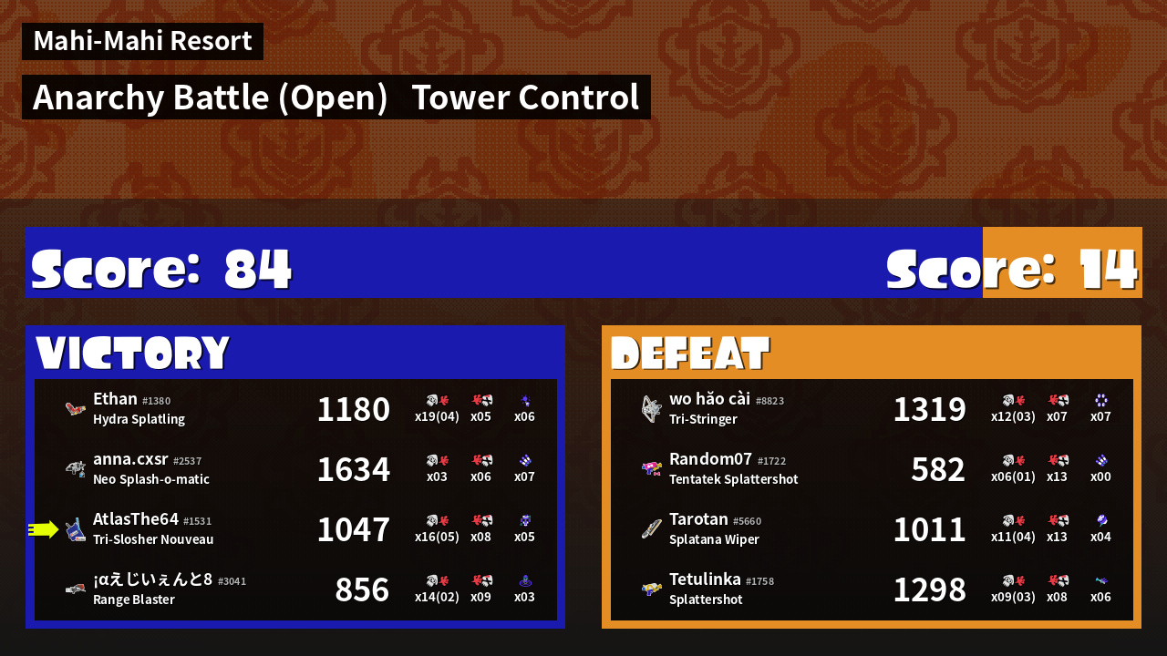 | Mode | Tower Control - Anarchy Battle (Open) | ||