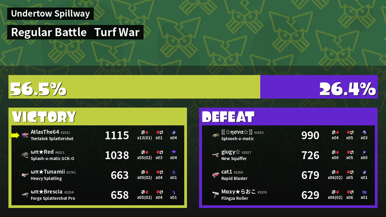 | Mode | Turf War - Regular Battle | ||