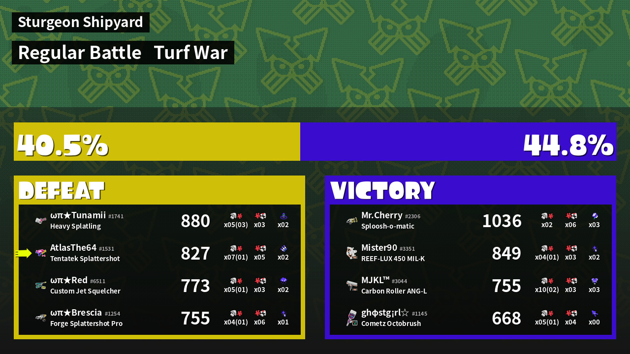 | Medals | #1 Overall Splatter #1 Home-Base Inker #1 Enemy Splatter | ||
