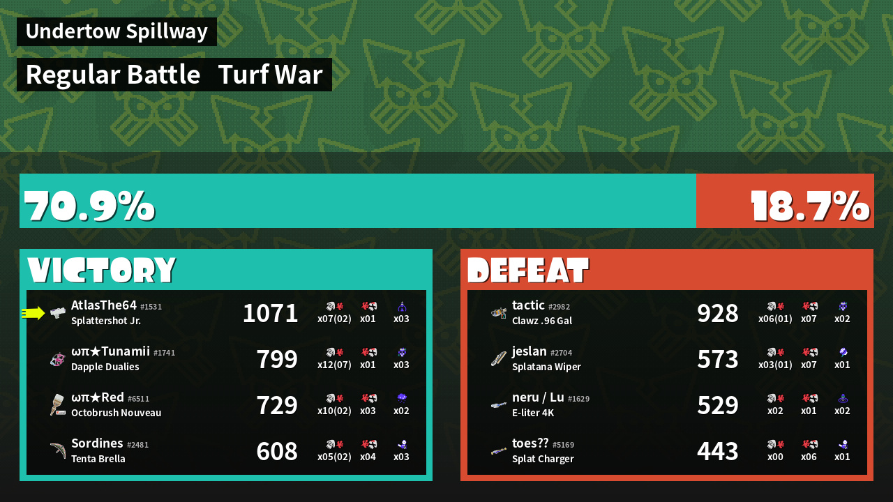 | Mode | Turf War - Regular Battle | ||