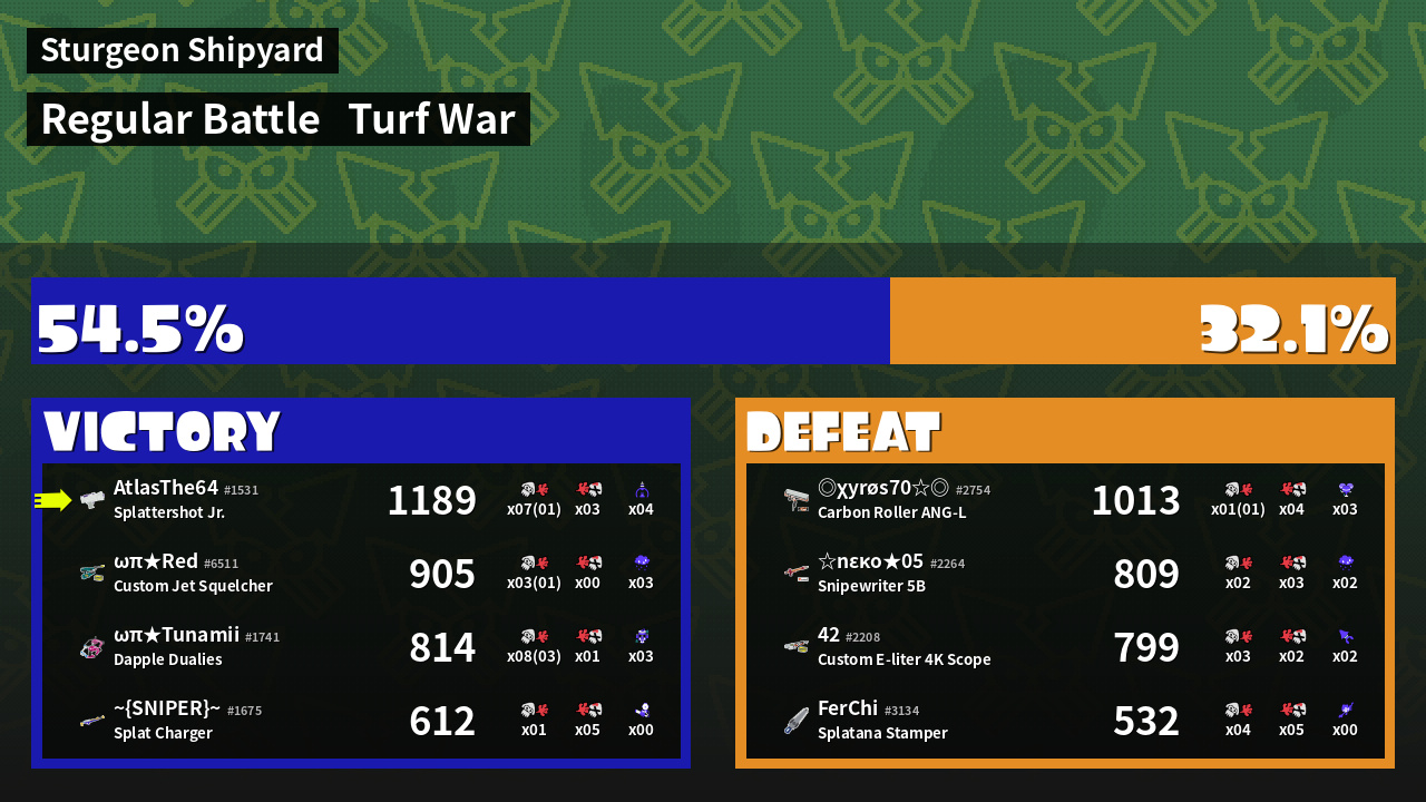 | Medals | #1 Turf Inker #1 Enemy-Base Inker #1 Enemy Splatter | ||