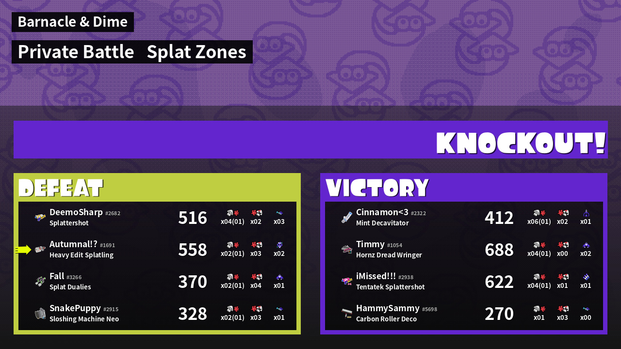 | Medals | #1 Splat Zone Guard #1 Turf Inker #1 Splat Assister | ||