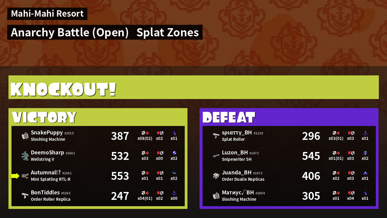 | Mode | Splat Zones - Anarchy Battle (Open) | ||