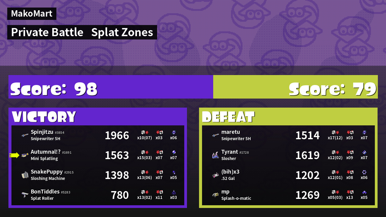 | Weapon | Mini Splatling ( Burst Bomb / Ultra Stamp) | ||