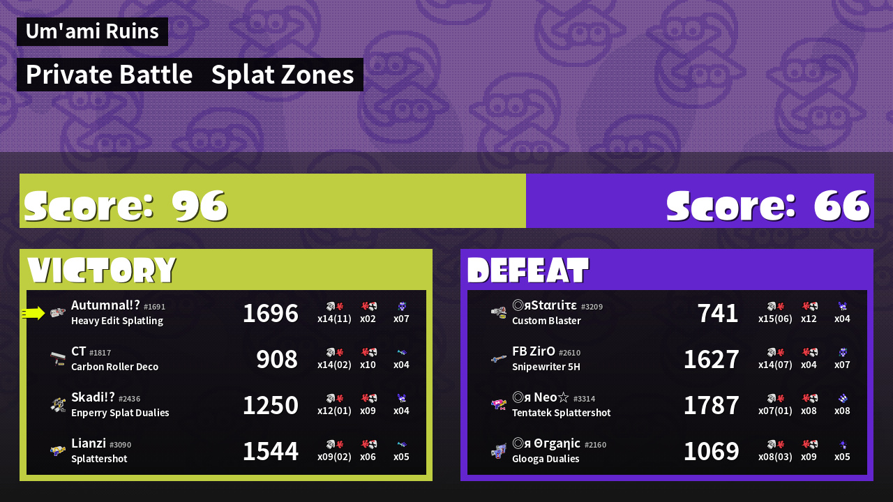 Kills / Deaths | 3 + 11 / 2 > Kill Ratio: 1.50 | ||