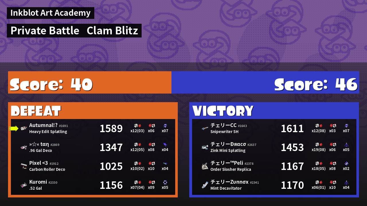 Name | Weapon | Inked | ![]() |