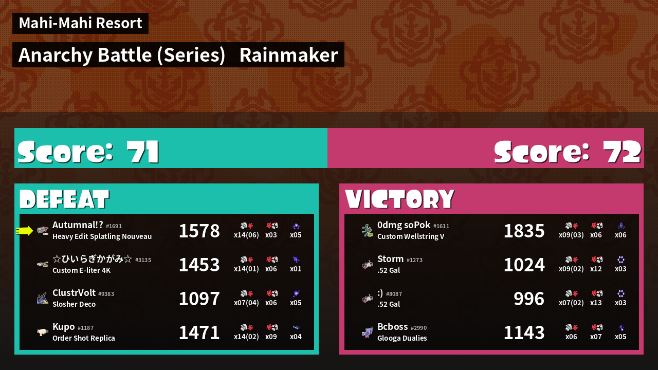 Kills / Deaths | 8 + 6 / 3 > Kill Ratio: 2.67 | ||