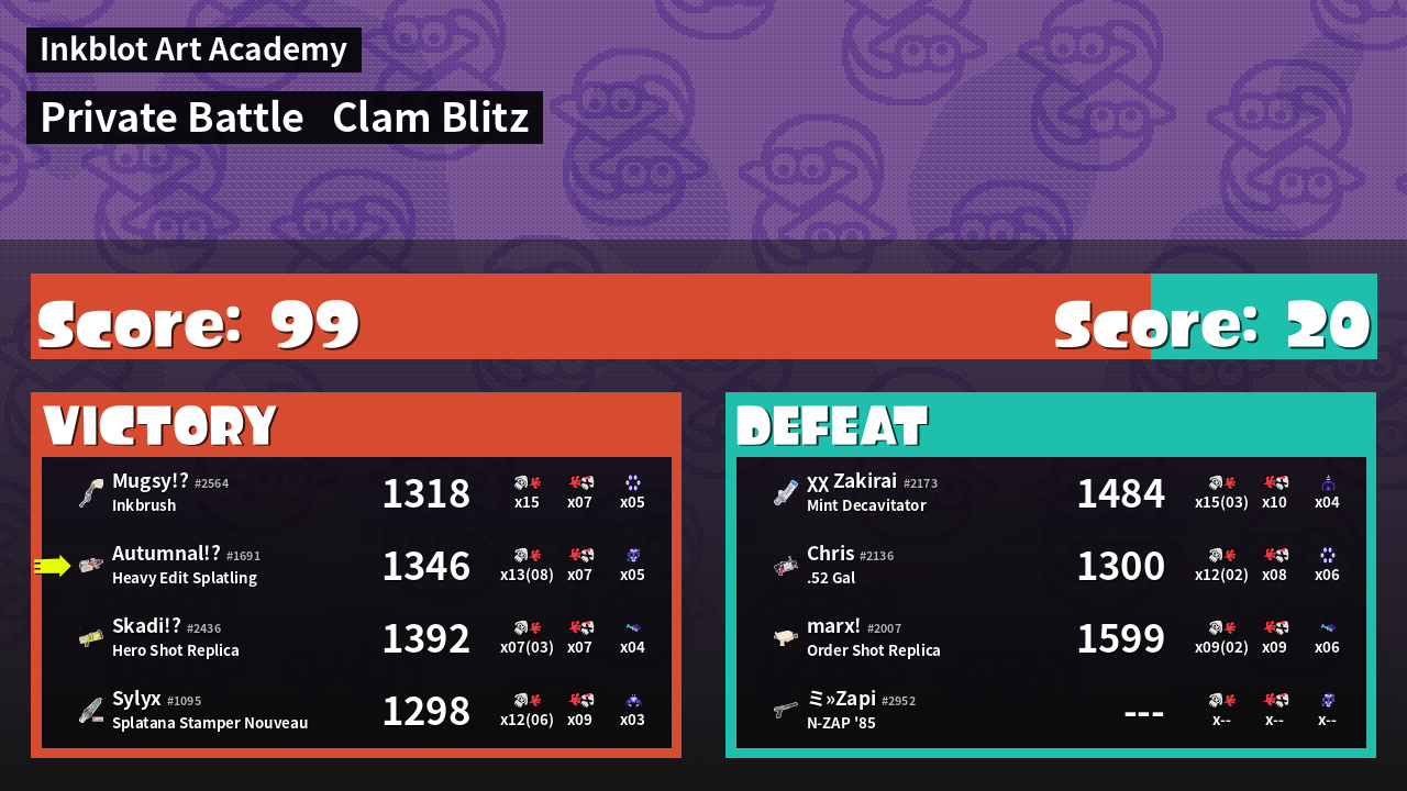 Name | Weapon | Inked | ![]() |