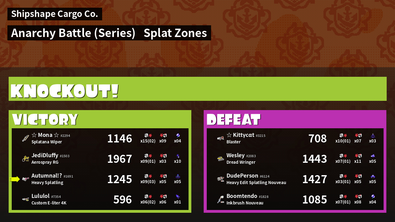 Kills / Deaths | 6 + 3 / 5 > Kill Ratio: 1.20 | ||