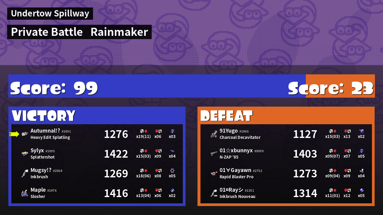 | Weapon | Heavy Edit Splatling ( Curling Bomb / Tacticooler) | ||