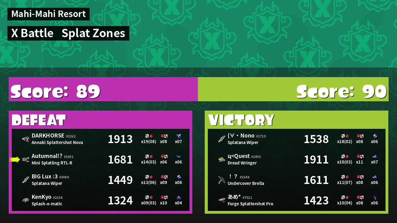 | Mode | Splat Zones - X Battle | ||